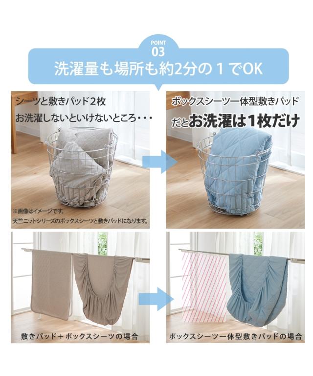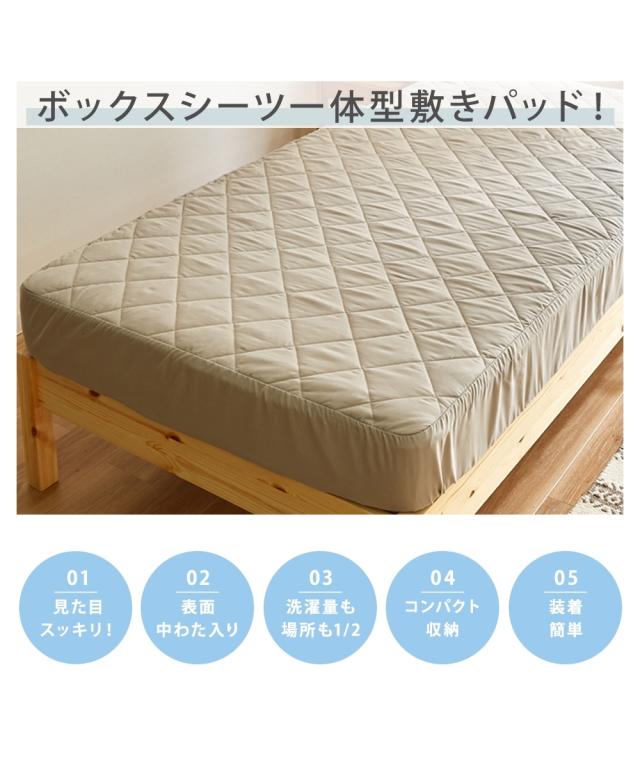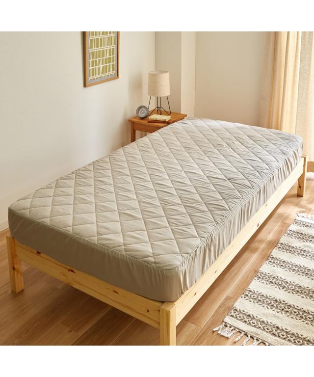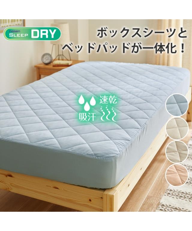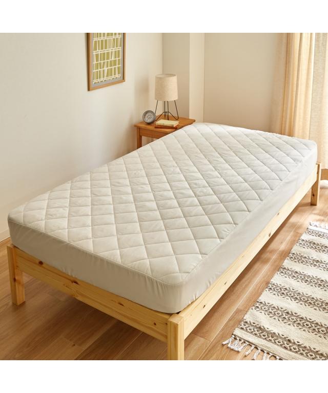 ベッドパットとシーツが一体化して便利!ベッドパッドを敷いて、ボックスシーツを被せてメイキングするのは手間がかかるんですよね!本品は湿気や汚れをしっかりキャッチできるようにボックスシーツに中わたを入れキルティングしました。大切なマットレスを守りつつキレイにベッドメイキングが可能です。もうベッドパッドがズレる心配もないので◎♪吸汗(水)速乾タイプなのでサラっと快適!お手入れもラクです。