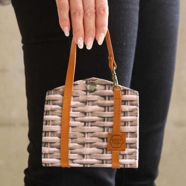 マスクケース。カラーは、ウィロー柄(4548815102282:SFVG2100)、ユーズドウッド柄(4548815102299:SFVG2110)、ラタン柄(4548815102305:SFVG2120)、白樺かご柄(4548815102312:SFVG2130)、です。外したマスクに避難場所を。■食事の時など一時的に外したマスクをとりあえずの置き場としての簡単にしまえるケースです。■持ち手の片方は取り外せるので、バッグやリュックなどに引っ掛けて持ち運びできます。外出先でケースを取り外さずにそのまま使えます。■マスクを挟んで紐部分を外に出して落ちないようにスナップボタンで留めるだけで衛生的に使えます。■自然素材をプリントしたユニセックスデザインなのも嬉しいポイントです。■ケースの内側は撥水加工が施されているので、除菌スプレーでお手入れがしやすく清潔に保てます。
