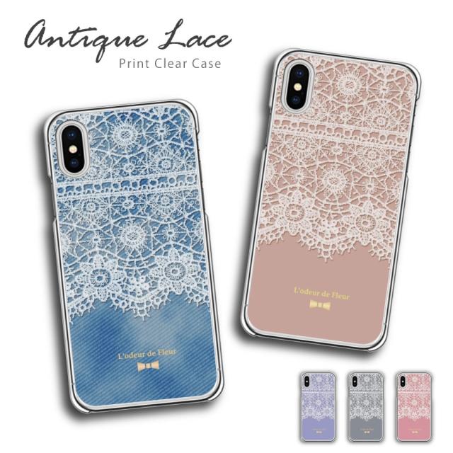 SOV42 Xperia 8 エクスぺリアレース柄 デニム風 アンティーク リボン ハード かわいい おしゃれ スマホカバー