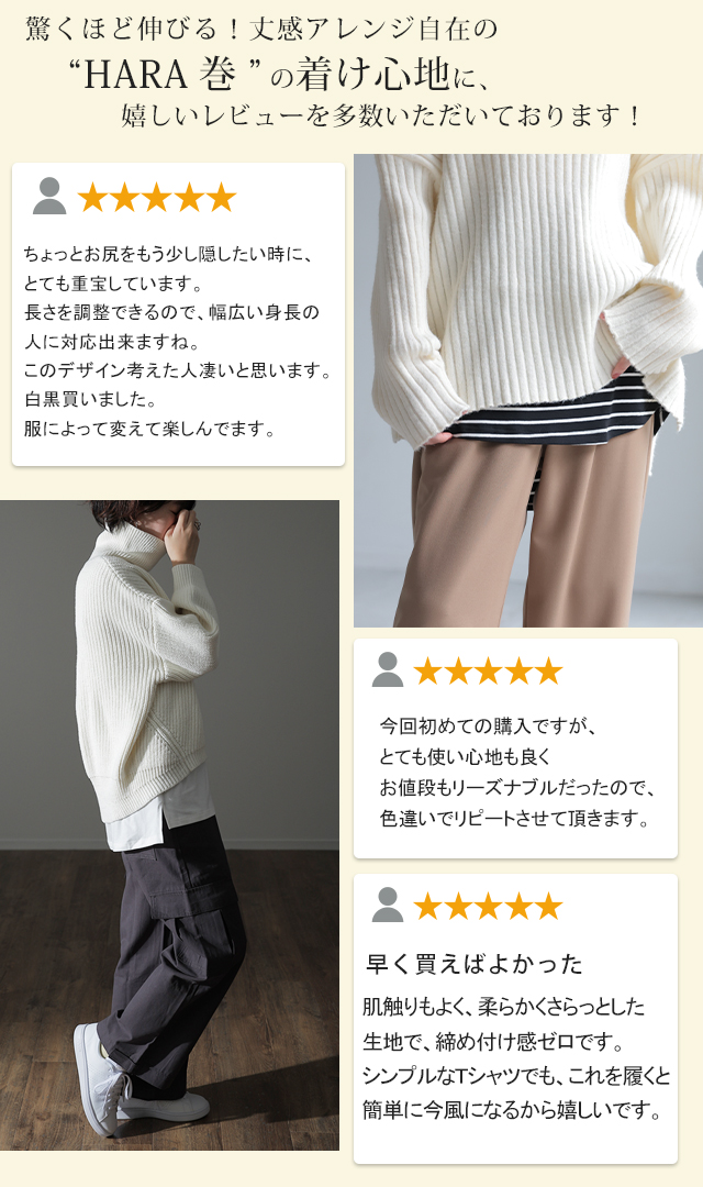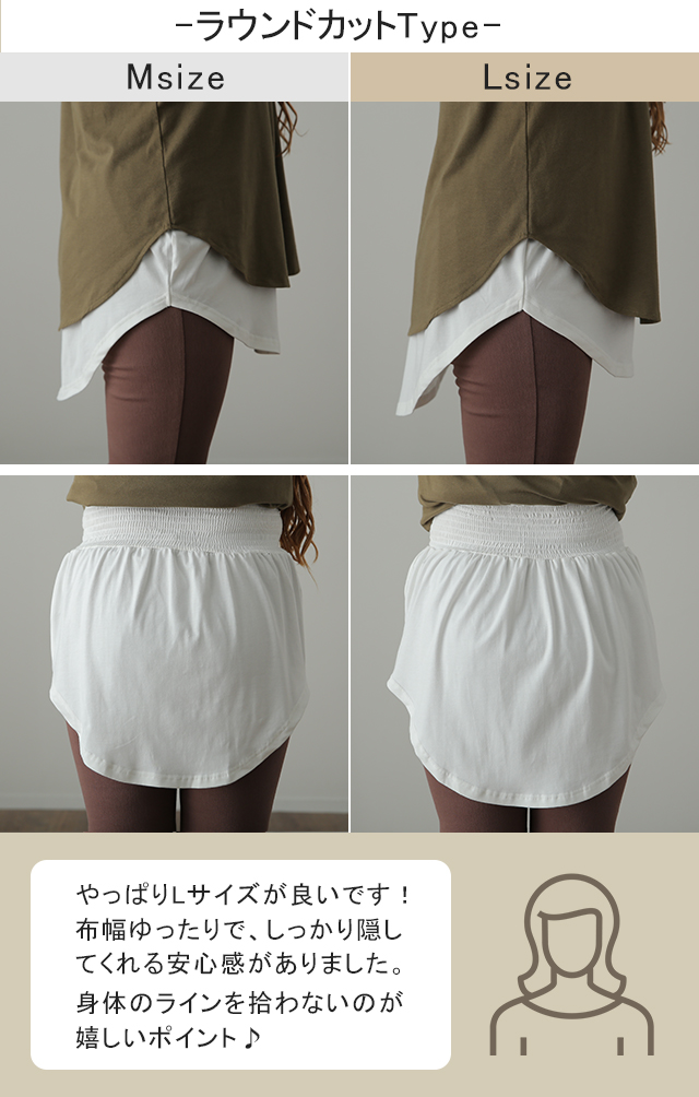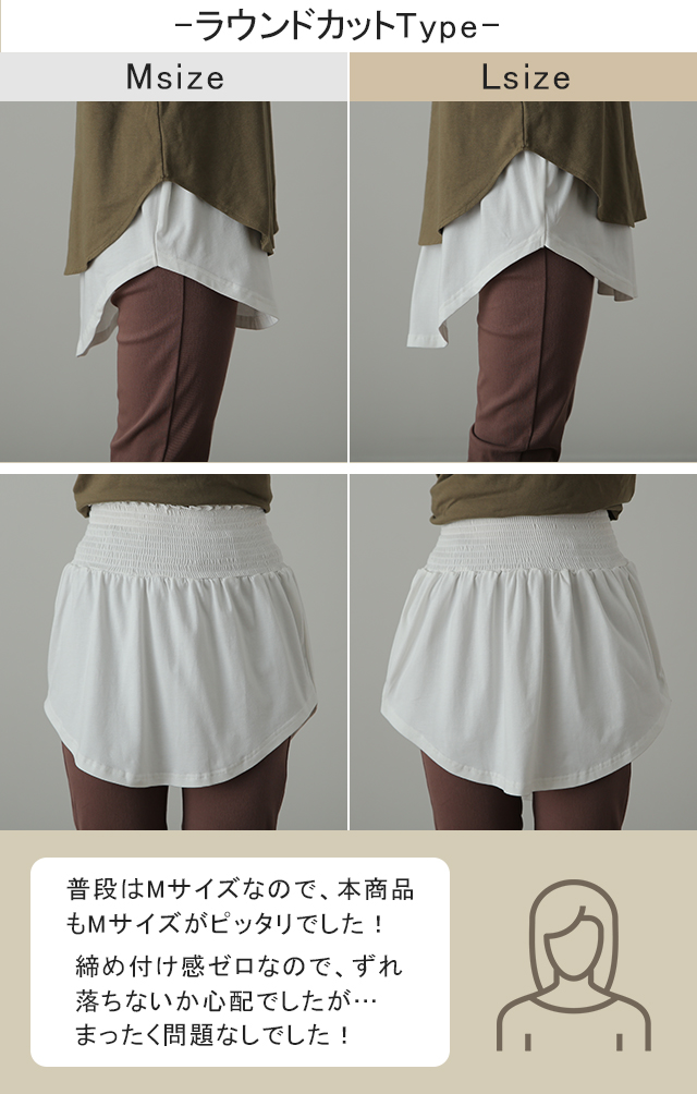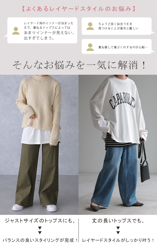 - 少し生地が薄いので★を減らしましたが、ウエストも締めつけ感なしで、簡単レイヤードできて良かったです。