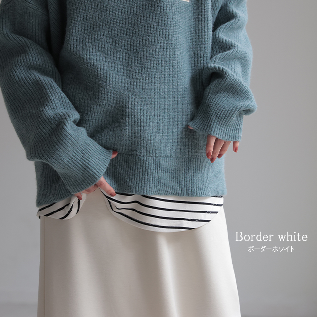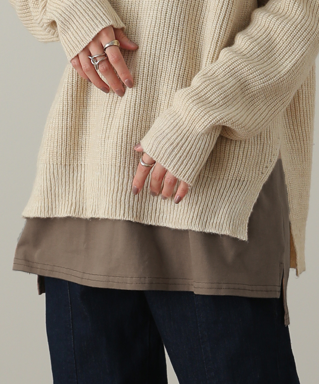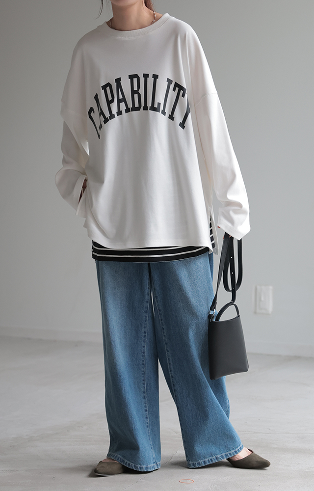 トップスの下に1枚プラスするだけでレイヤードコーデが完成。