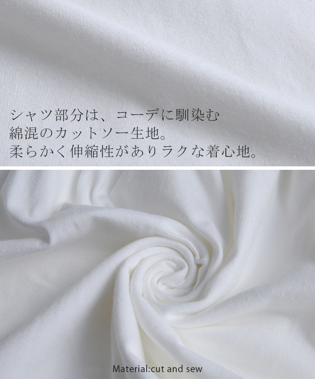 | 素材 | 表地:綿65% ポリエステル30% ポリウレタン5% 別布:レーヨン95% ポリウレタン5% |