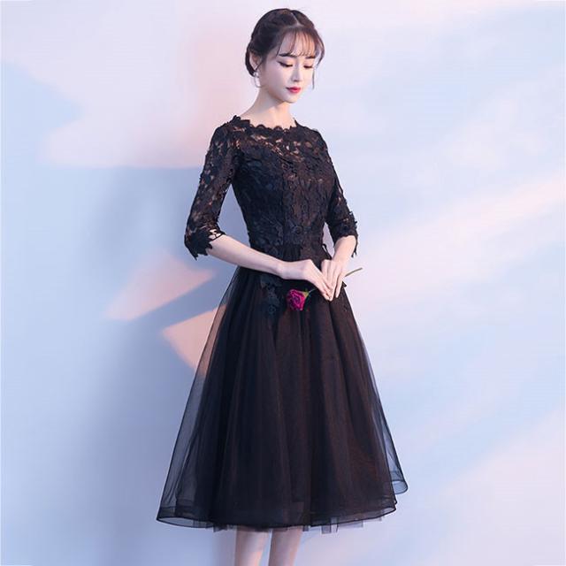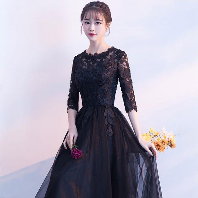ドレス パーティードレス 結婚式ドレス ワンピース 袖あり 冬新作 新作 セレモニー お呼ばれドレス 五分袖 総レース ロング 大きいサイズ フォーマルドレス 入園式 ママ 卒業式 謝恩会 発表会 演奏会 披露宴 レース 上品 A ギフト 秋服 秋冬
