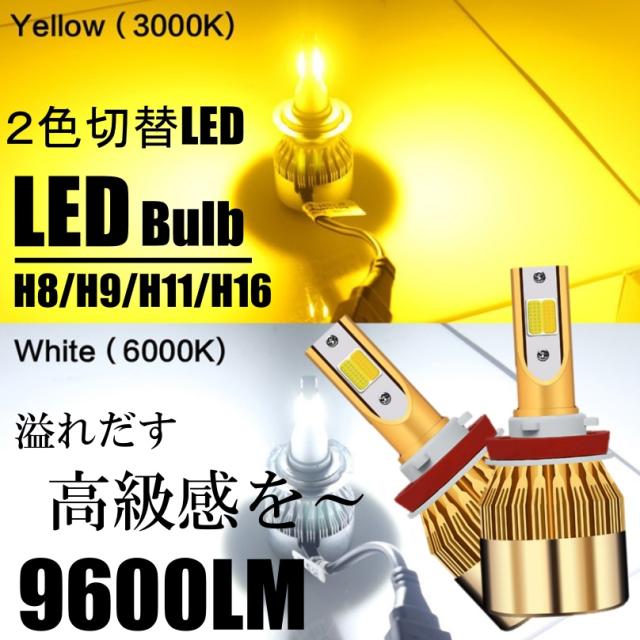 LED フォグランプ 2色切替 カラーチェンジ 3000kイエロー/6000kホワイト LEDバルブ ツインカラー H8/H9/H11/H16 HB4 ストロボ機能付き