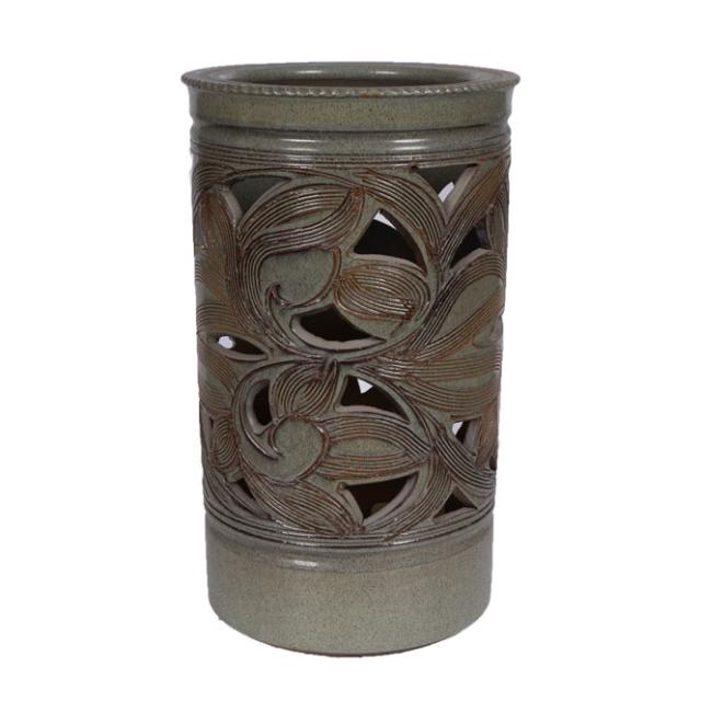 切立唐草透し彫(天目チタン釉)傘立[信楽焼 陶器 置物 傘立]