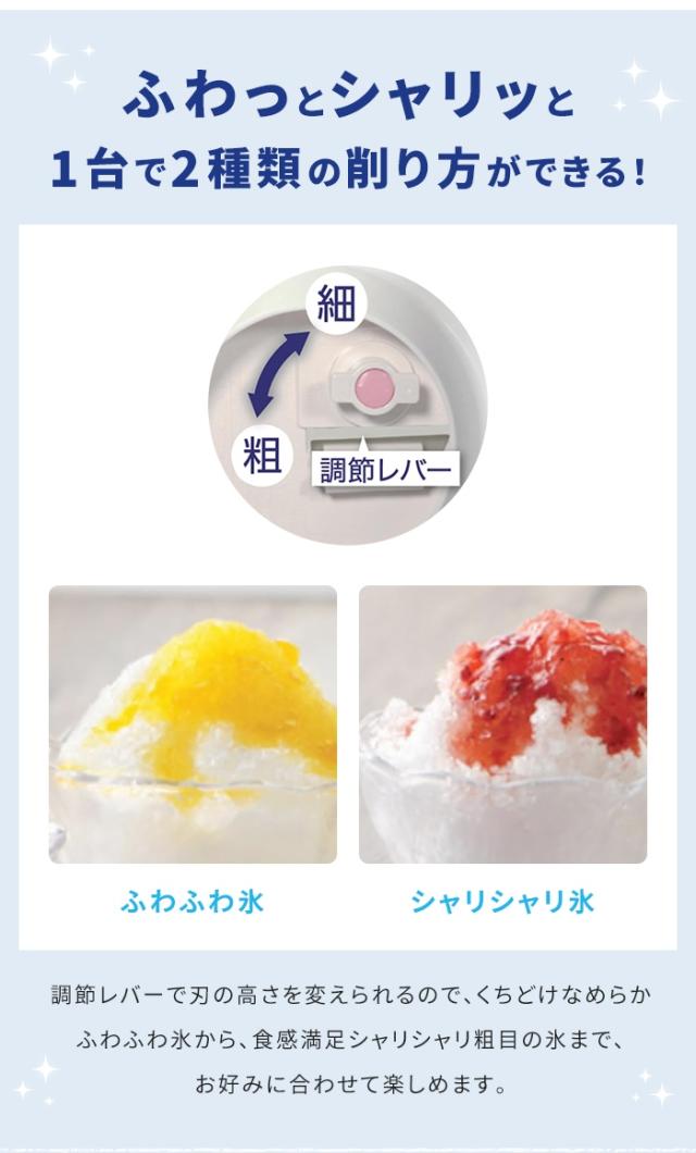 調節レバーで歯の高さを変えられるので、くちどけなめらかなふわふわ氷とシャリシャリ粗めの氷の2種類の食感を楽しめます。