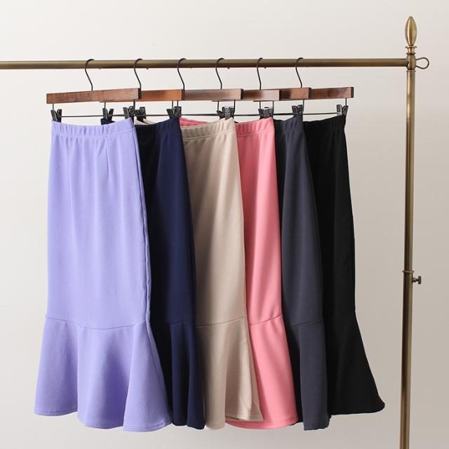 春夏 新作 マーメイドスカート ロング 膝丈 ひざ丈 スカート レディース ロング丈 ボトムス 無地 ウエストゴム タイト ミモレ きれいめ カジュアル 伸縮性 かわいい 上品