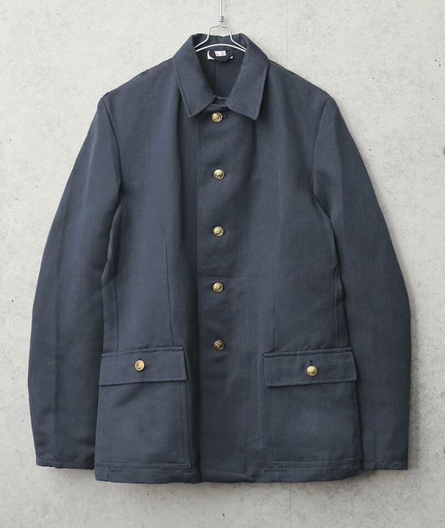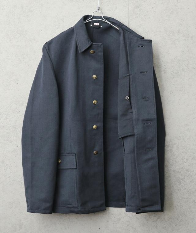 50年代末ごろから採用された東ドイツ軍のHBTジャケット。 国家人民軍(Nationale Volksarmee)の中でもアンカーモチーフの金ボタンから人民海軍のユニフォームと想定されます。織り目がしっかりと見えるハリのあるHBT(ヘリンボーンツイル)素材を使用した一重のコットンジャケットは、カジュアルながら品のある美しいシルエットです