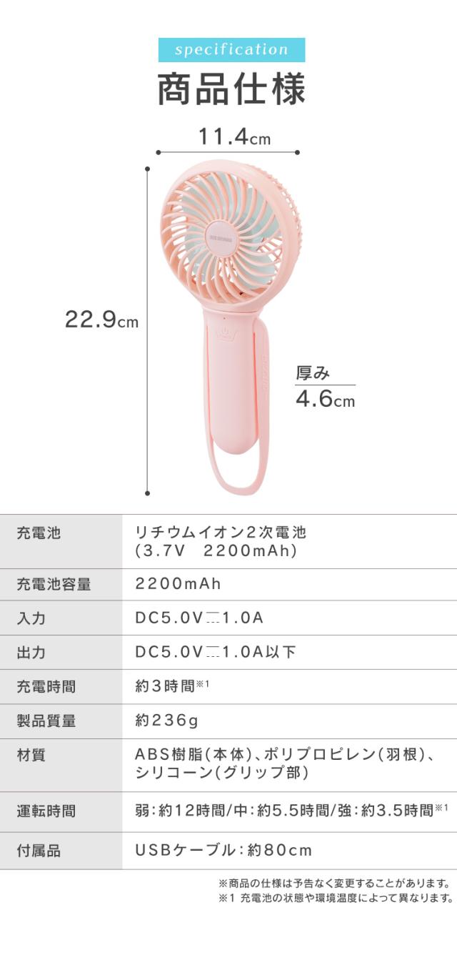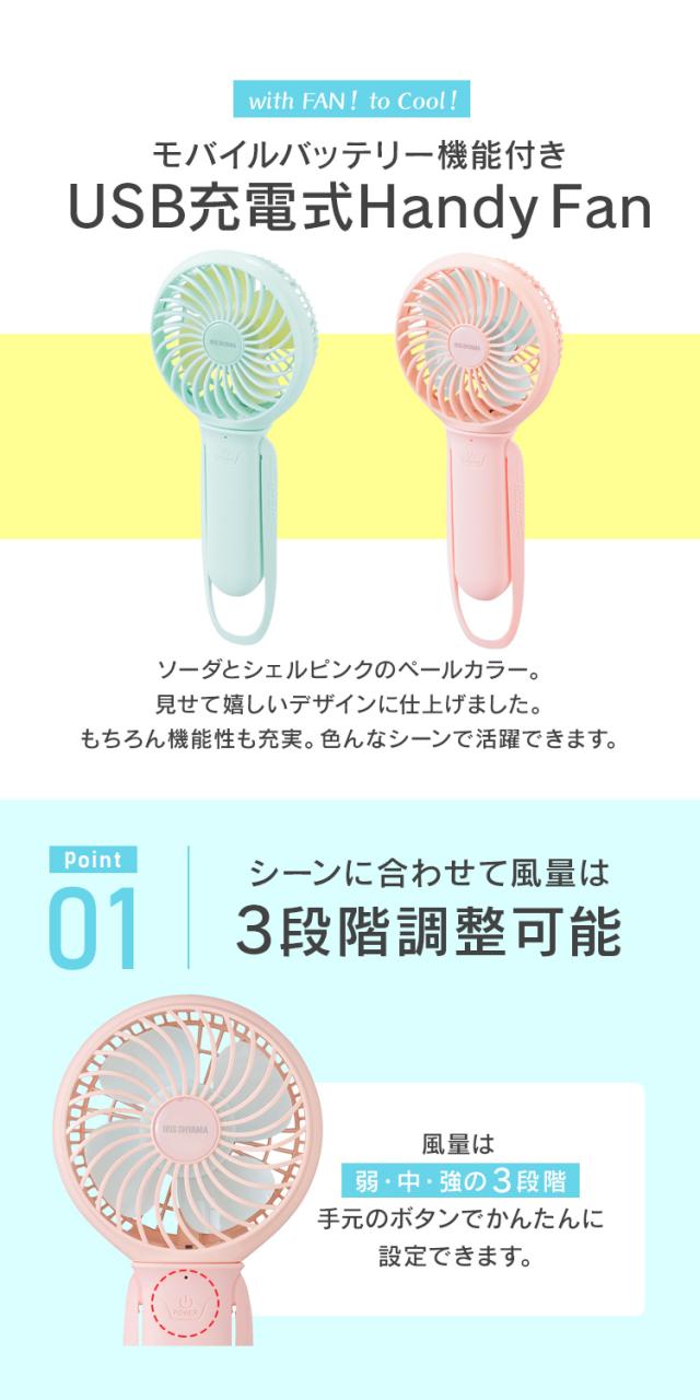 扇風機 ミニ扇風機 充電式 ハンディファン JHFBL-01-A JHFBL-01-P ソーダ シェルピンク 全2色 ハンディ ファン 扇風機 ミニ扇風機 持ち歩き USB ハンディファン 卓上扇風機 風 涼しい 夏 充電式 HandyFan アイリスオーヤマ
