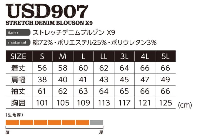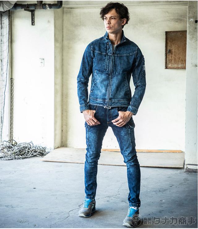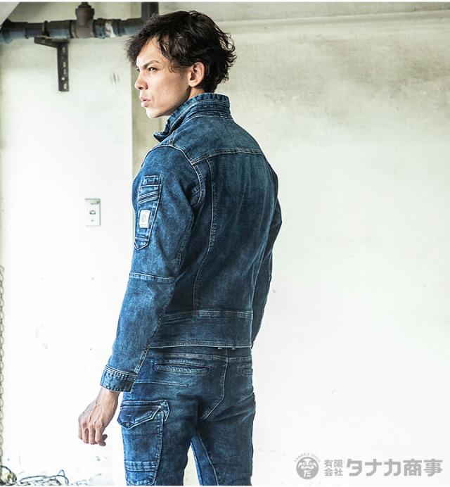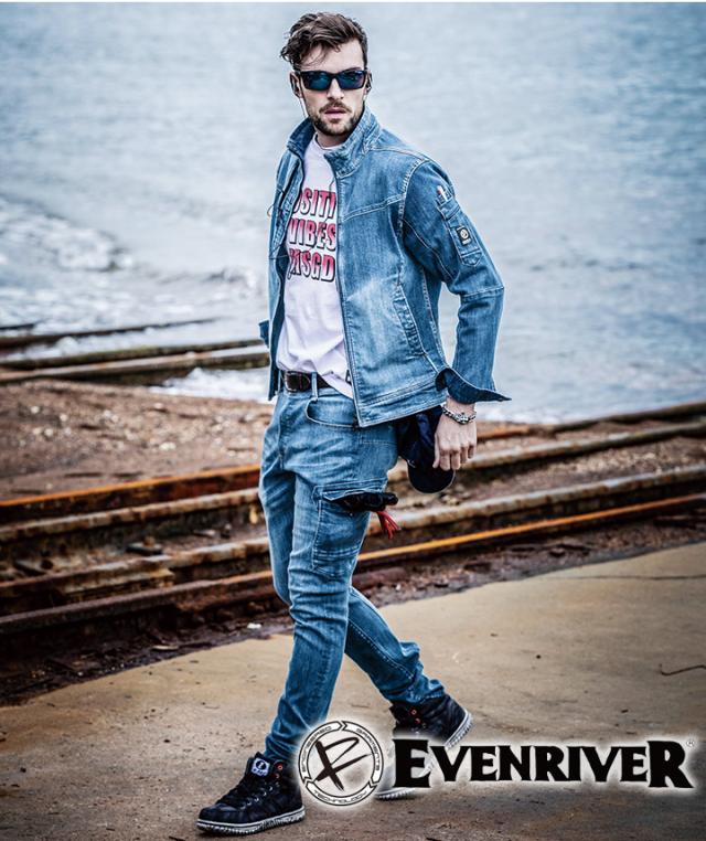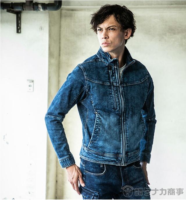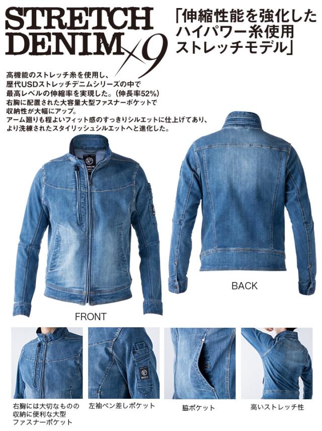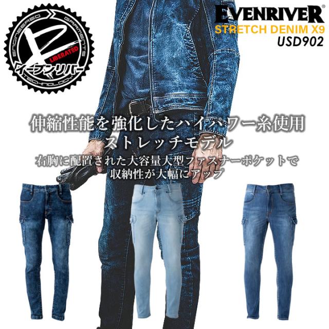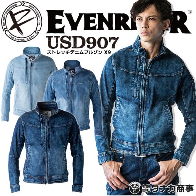 作業着 ストレッチデニムブルゾン X9 イーブンリバー USD907 長袖ジャケット ジャンバー デニム 上着 作業服 作業着 EVENRIVER【4L-5L】