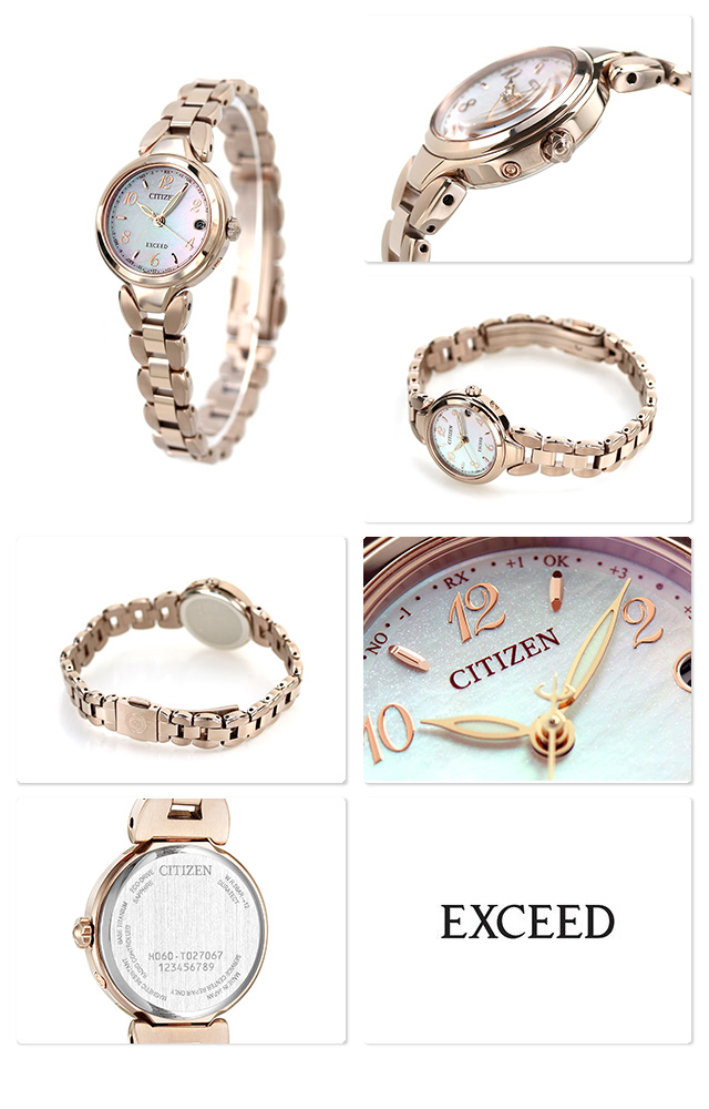 正規品 7年保証キャンペーン 送料無料 シチズン エクシード エコ・ドライブ電波時計 ティタニア シリーズ ハッピーフライト チタン 電波ソーラー 日本製 エコ・ドライブ電波 レディース 腕時計 ES9472-54W CITIZEN EXCEED Titania Happy Flight アナログ ホワイトシェル×サクラピンク ◆人気シリーズのデザインを受け継ぎながら、ワールドタイム機能を搭載したハッピーフライトモデルが登場。ラウンドケースのフォルム、やさしくエレガントな印象のフラワーバンドを踏襲しつつ、アラビア数字とカットインデックスのバランスなどをアレンジ。切分に時差表示で優れた視認性を確保しながら、ひときわすっきり、上品な印象に仕上げました。女性の肌を明るく美しくみせる色、サクラピンク*もポイント。スーツスタイルから、休日の大人カジュアルまで幅広く合わせることができます。 *サクラピンク、Sakura pinkは、シチズン時計株式会社の商標です。 発売日:21年4月発売