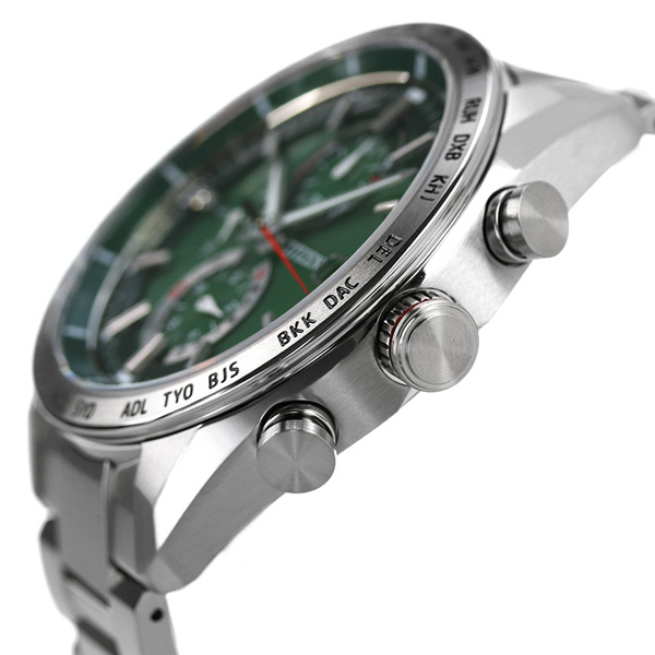 正規品 7年保証キャンペーン 送料無料 シチズン エコドライブ ソーラー電波 アテッサ アクトライン ダイレクトフライト チタン 日本製電波 メンズ 腕時計 ブランド AT8181-63W CITIZEN ATTESA ACT Line アナログ グリーン 自分らしくビジネスライフを楽しむ人へ生まれた「ACT Line」。スーツスタイルでも、個性が際立つデザインがオフタイムのカジュアルにも、フィットします。 強弱をつけたインデックス、軽快な印象のプッシュボタン、スマートに削ぎ落とされたケースライン、ワンポイントの差し色が特徴のモデル。6時位置のリングは複数のパーツを貼り合わせ、動きのある表情を実現。力強さの中にも躍動感あふれるデザインです。都市表記をケースの外周に配置し、アクティブな表情が際立ちます。また、ツートン仕様のケースが、シャープなデザインの中にも力強さをプラスしています。ベゼルをミラー仕上げにすることで重たい印象になり過ぎず、スッキリとした男らしさを演出します。 発売日:21年4月発売 ギフト プレゼント 記念品 父の日 敬老の日 クリスマス 誕生日 結婚記念日 就職祝い 卒業祝い 還暦祝い 20代 30代 40代 50代 60代