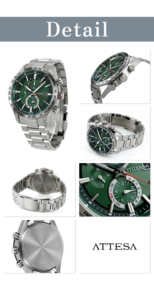 正規品 7年保証キャンペーン 送料無料 シチズン エコドライブ ソーラー電波 アテッサ アクトライン ダイレクトフライト チタン 日本製電波 メンズ 腕時計 ブランド AT8181-63W CITIZEN ATTESA ACT Line アナログ グリーン 自分らしくビジネスライフを楽しむ人へ生まれた「ACT Line」。スーツスタイルでも、個性が際立つデザインがオフタイムのカジュアルにも、フィットします。 強弱をつけたインデックス、軽快な印象のプッシュボタン、スマートに削ぎ落とされたケースライン、ワンポイントの差し色が特徴のモデル。6時位置のリングは複数のパーツを貼り合わせ、動きのある表情を実現。力強さの中にも躍動感あふれるデザインです。都市表記をケースの外周に配置し、アクティブな表情が際立ちます。また、ツートン仕様のケースが、シャープなデザインの中にも力強さをプラスしています。ベゼルをミラー仕上げにすることで重たい印象になり過ぎず、スッキリとした男らしさを演出します。 発売日:21年4月発売 ギフト プレゼント 記念品 父の日 敬老の日 クリスマス 誕生日 結婚記念日 就職祝い 卒業祝い 還暦祝い 20代 30代 40代 50代 60代