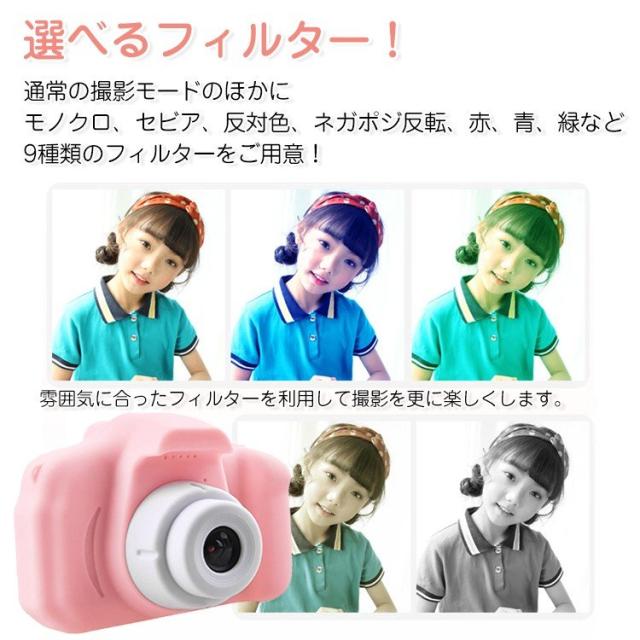 キッズカメラ ピンク ブルー 撮影 録画 動画 トイカメラ フィルター 知育ゲーム搭載 知育玩具 日本語 英語 多言語 子供用 プレゼント ギフト 誕生日 6歳 7歳 8歳 小学生 男の子 女の子