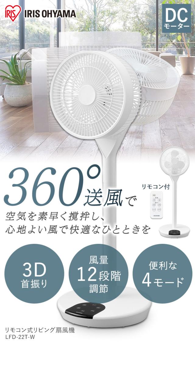 扇風機 dcモーター 静音 アイリスオーヤマ * LFD-22T 高さ2段階調整 3D 360°送風 風量12段階 リズム風 おやすみモード 左右自動首振り 空気循環 衣類乾燥 熱中症対策 省エネ DC リモコン付 入切タイマー タッチパネル 減光 リモコンホルダー