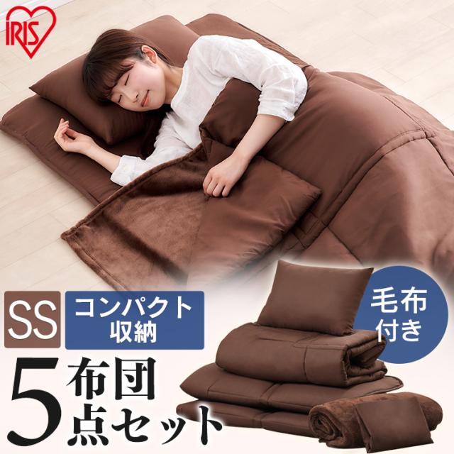 布団 ふとん コンパクト布団 5点セット KFS-C5S アイリスオーヤマ ブラウン コンパクト 小さめ 布団セット 組布団 車中泊 アウトドア 収納バッグ付き 送料無料 【セ】