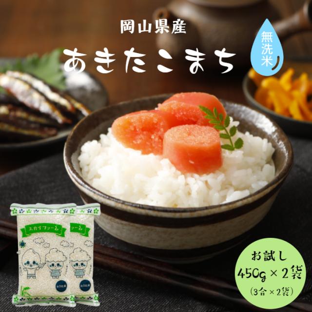 令和7年産 岡山県産 あきたこまち 無洗米 900g【450g (3合)×2袋】米 お米 ポイント消化 送料無料 お試し メール便