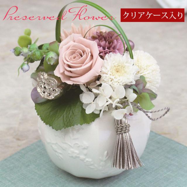 プリザーブドフラワー 母の日 ギフト アレンジメント お花 仏花 お供え 御供え お盆 かわいい ミニバラ 薔薇 あじさい アジサイ プレゼント そのまま飾れる インテリア 和風 送料無料 ラッピング可 クリアケース入り k_name