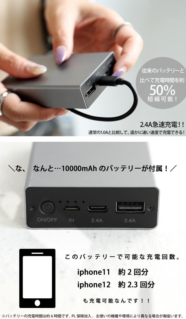 ※炎天下で長時間ご使用の場合、ファン部分が熱くなる事がございますので、ご使用の際は連続稼働時間をお確かめの上ご使用下さい。