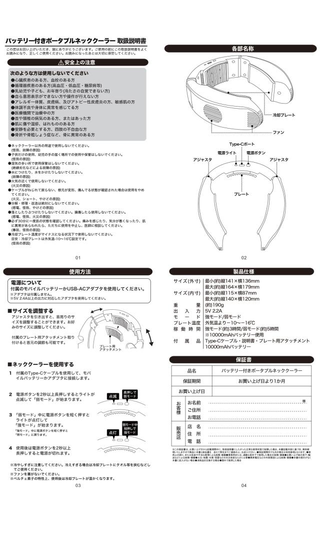 | ネッククーラー用コードの長さ | 約95cm |