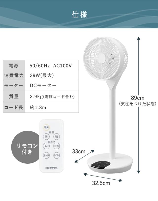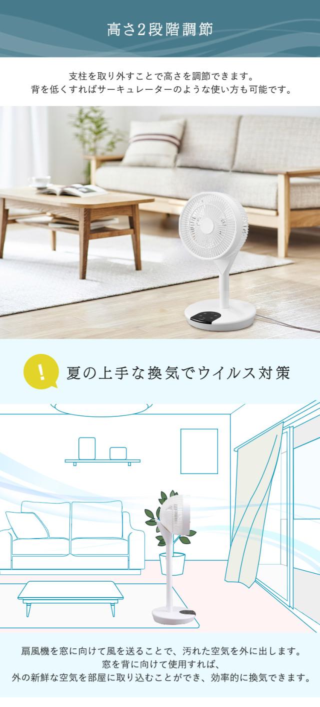 支柱を取り外して背を低くすればサーキュレーターのような使い方も可能です。