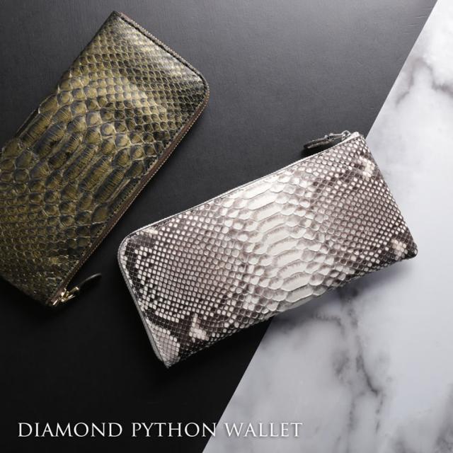 スリムなL字型のダイヤモンドパイソンの長財布。