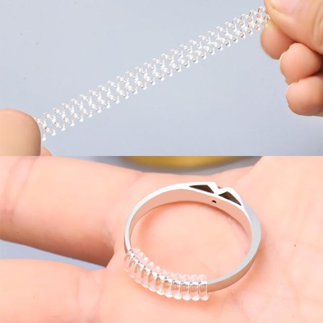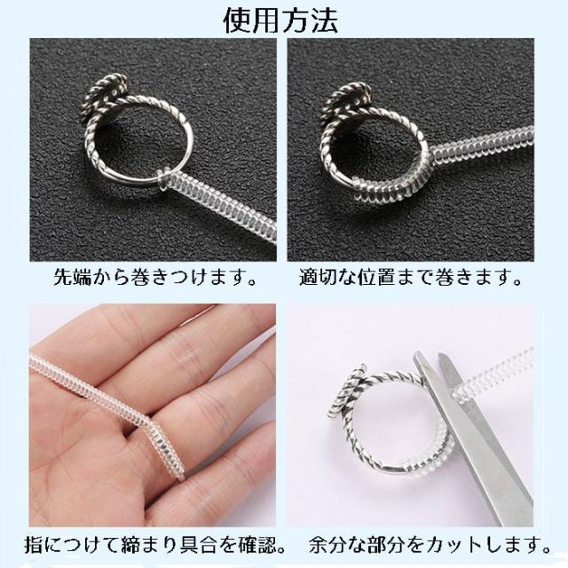 指輪に巻きつけてカットするだけでサイズ調整できる、簡単なリングアジャスターです。