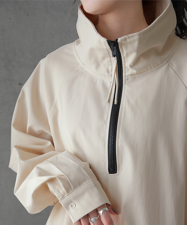ハーフジップのハイネックプルオーバーです。