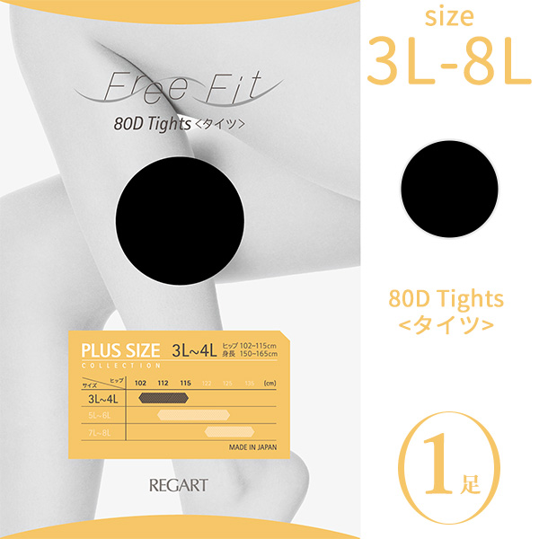 【1足】大きいサイズ タイツ レディース Free Fit ゆったりタイツ 80デニール (FFT-201) 1足‐3L 4L 5L 6L 7L 8L 抗菌防臭 股ずれ防止 つま先補強 吸汗 静電気防止 保湿 レガルト