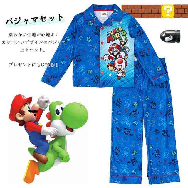スーパーマリオ パジャマ 上下 2点セット 長袖 長ズボン マリオ 子供用 キャラクター 寝巻き 100 110
