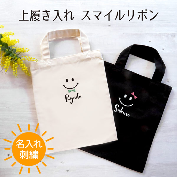 上履き入れ 上履き袋 入園入学 通園通学 トートバッグ スマイルマーク にこちゃんマーク 名入れ 刺繍 記念品 卒業 レディース メンズ ギフト プレゼント お出かけ ショッピングバッグ 通学 通園 習い事 お稽古バッグ エコバッグ オリジナル gp-bag02-smi2