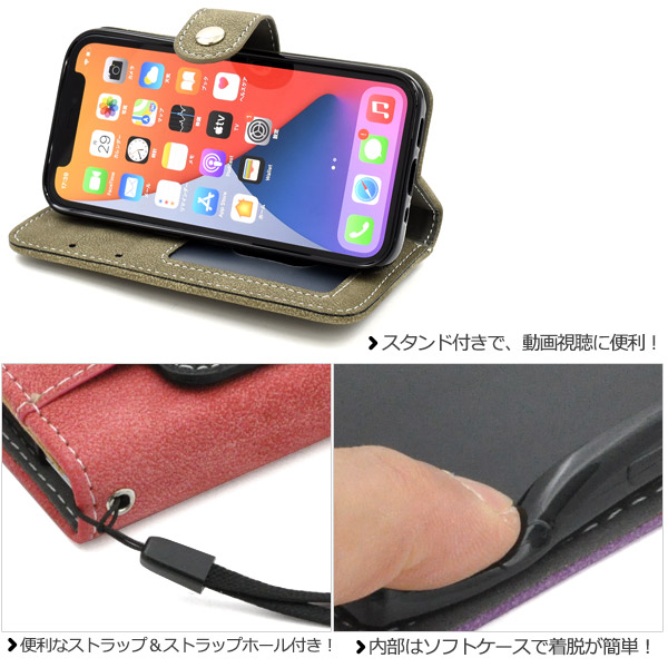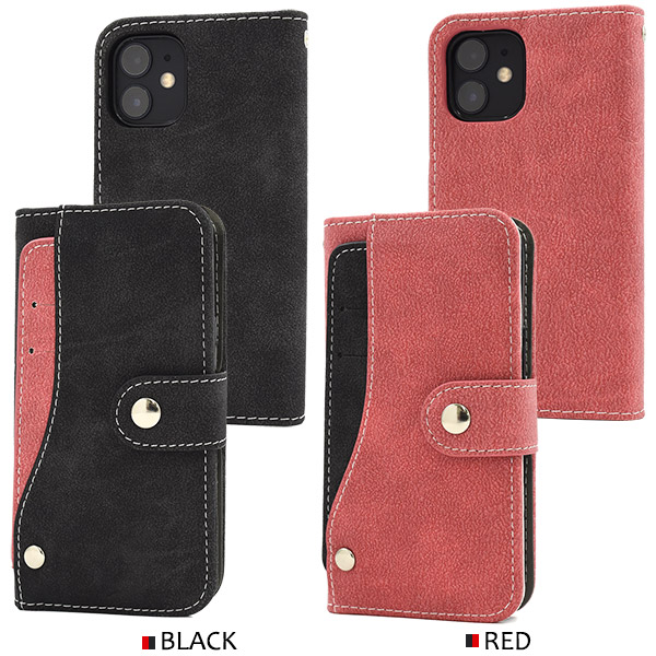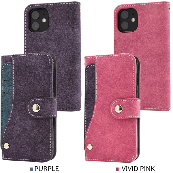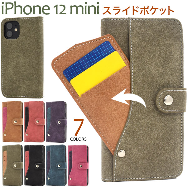 スマホケース iPhone 12 mini スライドカードポケット 手帳型ケース スナップボタン式 全7色 ICカード収納 傷防止 横開き iphone12mini カバー アイフォン12ミニ アイフォーン