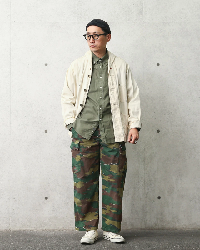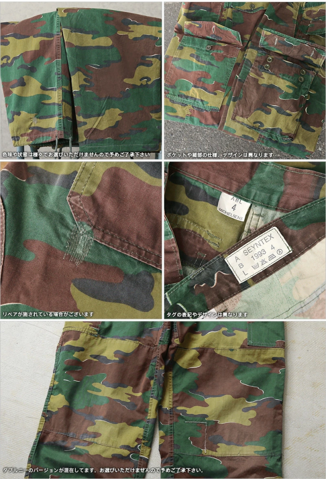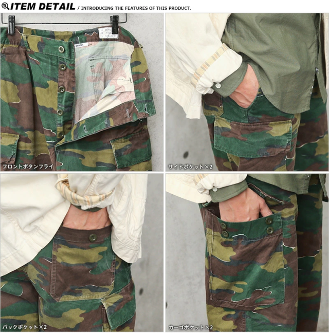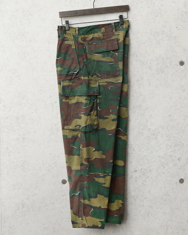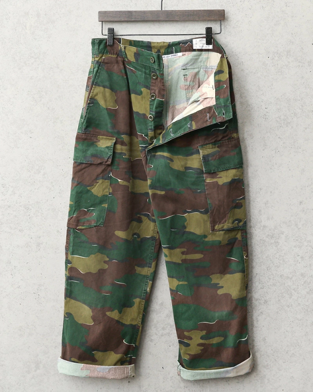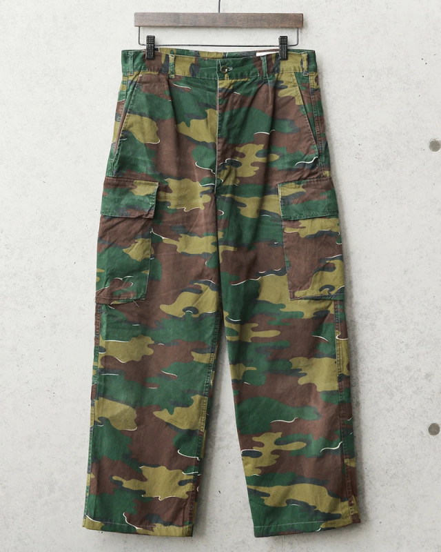 ベルギー軍より放出された実物のカーゴパンツで、厚すぎない平織りのコットンで年間を通して使えるカーゴパンツです。ベルギー軍の代名詞的なカモフラージュパターンとして外すことはできない希少なカーゴパンツです!
