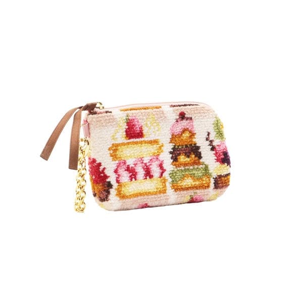 可愛らしいタルトやケーキを描いた、「ラブラリードルチェ」柄のキー&カードポーチ。見ているだけで甘いにおいが漂ってきそうなデザインに視線が集まります。ファスナー部分にはストラップを配して使いやすい仕上がりに。サイドにはチェーンをトッピング。内側にはフックをあしらっています。キーやカードはもちろん、小銭なども入れることができる便利なアイテムです。