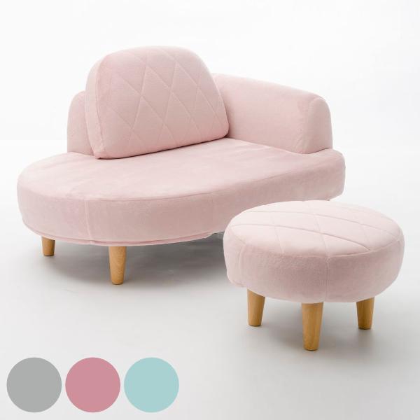 ソファ 幅104cm オットマン付き コンパクト フロアソファ かわいい ふわふわ パステルカラー ミルキーカラー ( カウチソファ オットマン リビングソファ ソファー 脚取り外し ローソファ コンパクトソファ 1人掛け )