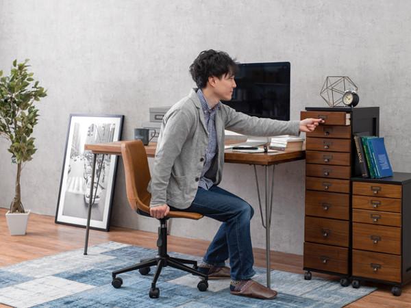 本革をリアルに再現したヴィンテージ調の合成皮革を使用したオフィスチェアです。お部屋の雰囲気を一気に格上げします。四角いフォルムがスタイリッシュな印象のスクエアタイプです。
