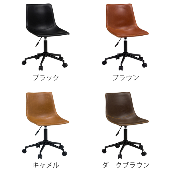 キャスターチェア 座面高42〜55cm スクエア 高さ調整 チェア ヴィンテージ調 デスクチェア ( オフィスチェア パソコンチェア ワークチェア 肘なし レザー調 チェアー 椅子 学習椅子 PCチェア 回転 合成皮革 おしゃれ )