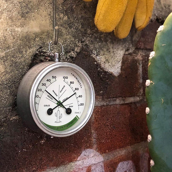 クールなスチール素材と、遊び心が散りばめられた文字盤がマッチした温湿度計です。お部屋の温度と湿度を視覚化することで、快適な環境を作ることが出来ます。ちょっとしたギフトにもオススメです。