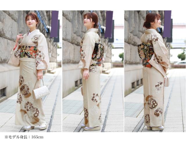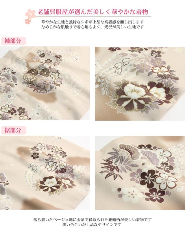 【レンタル】 訪問着 レンタル 19点フルコーディネートレンタルセット「ベージュ地に花輪」結婚式 入学式 七五三 ママ レトロ モダン 30代 40代 50代