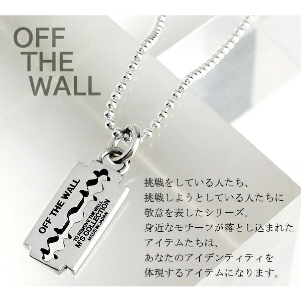 「OFF THE WALL」と刻まれたメッセージが、自分らしく生きたい人にぴったりのシルバーアクセサリーです。