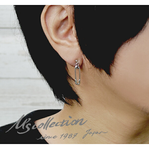 M's collection エムズコレクション セーフティピン イヤリング 1P 片耳 安全ピン シルバー ノンホールピアス ノンホール ピアス ブランド
