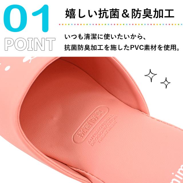お子様が喜ぶかわいいプリントの抗菌スリッパ。
