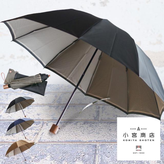 小宮商店 甲州織 スリー メンズ 雨晴兼用 長傘 65cm 8本骨(傘 メンズ 雨傘 日傘 兼用 ブランド 8本 かさ 大人 男性 おしゃれ 日本製 国産 高級 贈り物 ギフト プレゼント 大きい 紳士用 男性用 手開き UVカット) 1-2W