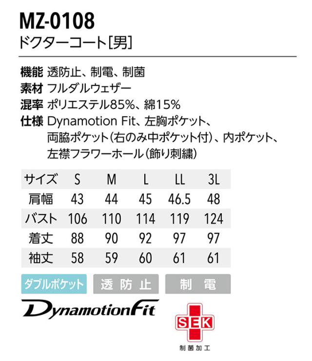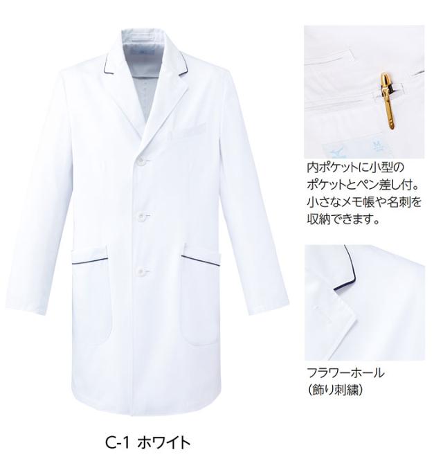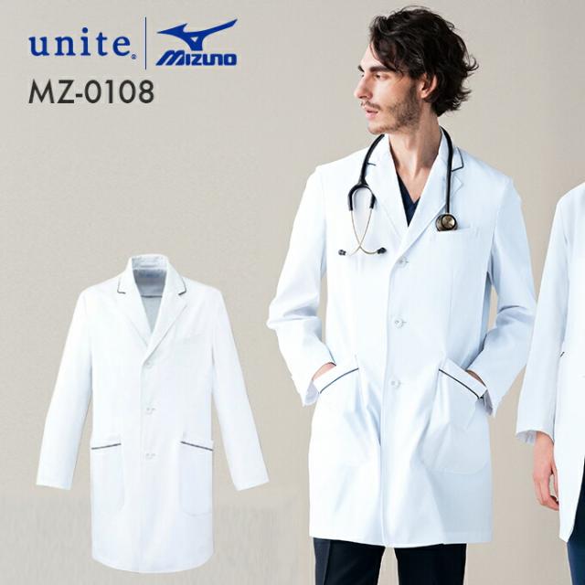 ミズノ ドクターコート チェスターコート風パイピング入りドクターコート(男性用)unite MIZUNO MZ-0108 医師 医療用 白衣 【ドクターコート】【男性用】【クリニック】【医師 医療用 白衣】チトセ 診察衣