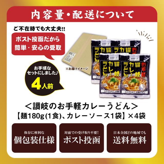 カレーうどん カレーソース付き 4食 送料無料 ゆでうどん 讃岐のカレーうどん レンチン 時短調理 夜食 間食 ポイント消化 ポイント利用 讃岐うどん 食品 グルメ 通販 ポスト投函 どんまい