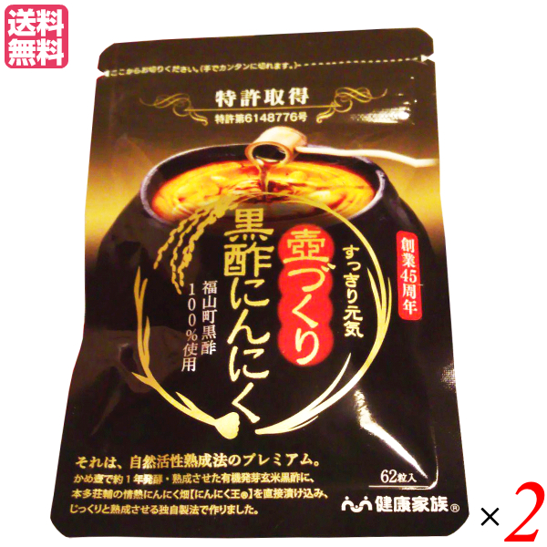 【超BIGラリー!ポイント最大+16%!】健康家族 壺づくり黒酢にんにく 62粒 2袋セット ニンニク 黒酢 サプリ 送料無料