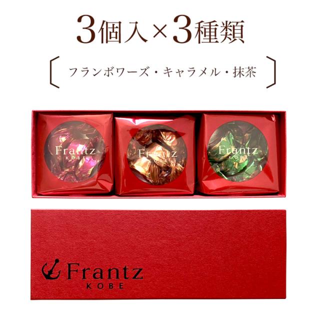 ボンボンショコラ(フランボワーズ/キャラメル/抹茶)×各3粒(約13g/粒)
