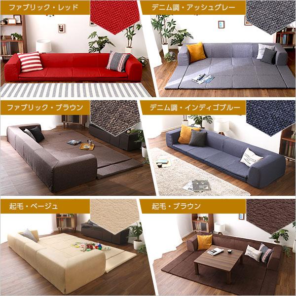 Plateau プラトー フロアマット付きソファLサイズ 幅250cm (フロアソファ ロングソファ マット付き 2way 洗える カバーリング 国産 日本製 ファブリック デニム 起毛 レッド ブラウン グレー ブルー ベージュ おしゃれ おすすめ)