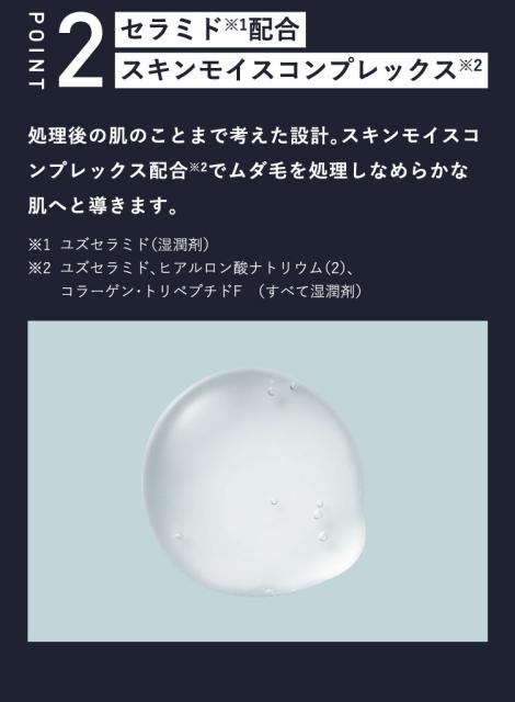 その他の成分:ヒオウギ抽出液、レンゲソウエキス、アマチャエキス、キイチゴエキス、ローマカミツレエキス、アマチャヅルエキス、ダイズエキス、ユズセラミド、加水分解シルク末、ヒアルロン酸ナトリウム(2)、コラーゲン・トリペプチド F、セトステアリルアルコール、プロピレングリコール、流動パラフィン、ポリオキシエチレンセチルエーテル、パラフィン、水酸化ナトリウム、BG、グルコン酸ナトリウム、エタノール、無水エタノール、香料