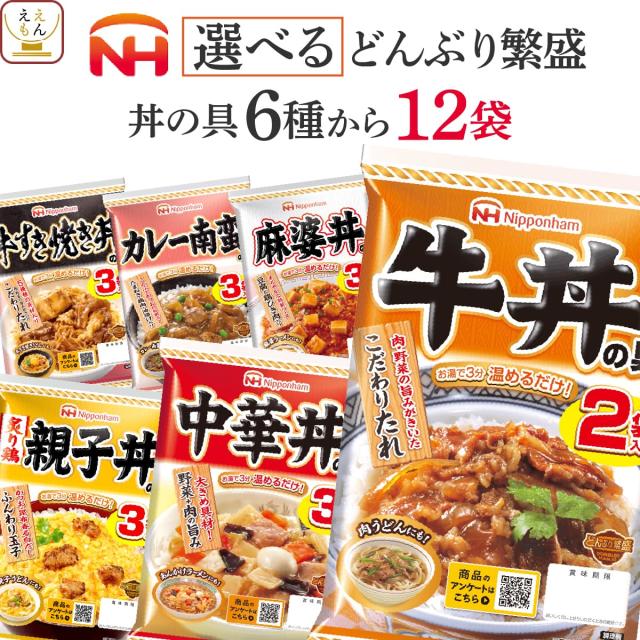 レトルト食品 詰め合わせ 丼 常温 どんぶり繁盛 6種類から 選べる 丼の具 12袋 セット レトルト 惣菜 おかず 【 送料無料 沖縄以外】 日本ハム どんぶりの具 牛丼 親子丼 中華丼 カレー南蛮 仕送り 食品 バレンタイン 2026 内祝い ギフト
